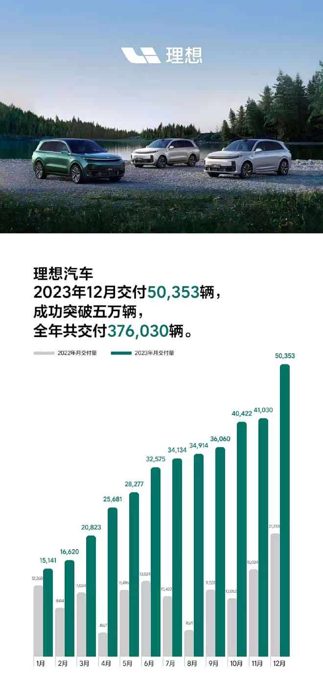 二是理想汽车单月销量突破 5 万辆,且是中国新势力车企有史以来第一次迈过三十万辆年交付大关。有业内人士分析称:“今年 6 月,理想汽车单月销量首次突破 3 万辆,12 月,理想汽车单月销量首次突破 5 万辆。 同样的增幅,理想用了 2 个季度,Tesla 用了 8 个季度。 “