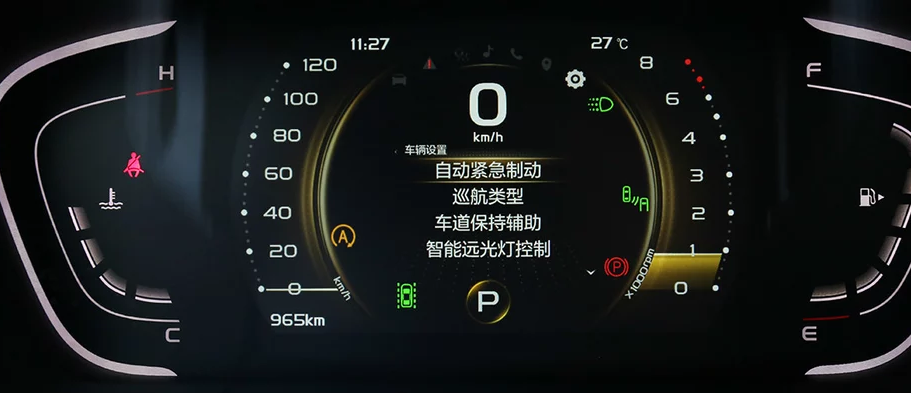 此外,吉种嘉际在内饰上做了很多让人感到眼前一亮的细节设计。比如在中控屏下方的空调按键设计,温度调节采用类似飞机上的拨杆调节方式,仪表盘背景灯调节、大灯高度调节的旋钮加入回纹,而且镀铬的手感很棒,这些细节之处很花心思,凸显精致感。