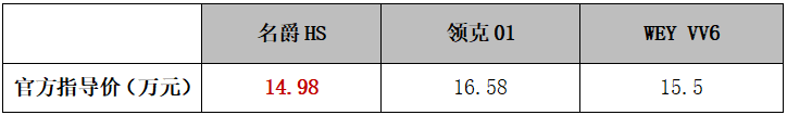 此次官方价格调整后,名爵HS全系车型售价仅9.98万-16.98万元,起售价探入10万内,与同为国产高端SUV的领克01、WEY VV6等车型的起售价相比,名爵HS价格优势明显。