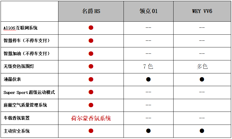 从对比来看,名爵HS比起领克01 2017款 2.0T两驱型版,售价低了1.6万,却豪气配置了BOSE音响、一体式真皮运动座椅、无级变色氛围灯、荷尔蒙香氛系统、LED大灯等豪华装备,产品竞争力强悍。