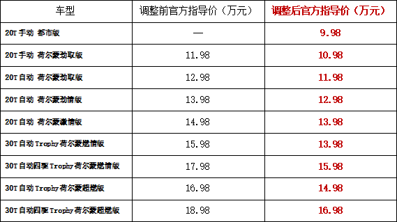 名爵HS于4月9日起全系下调官方指导价,30T车型下调2万,下订再送2万红包;20T车型下调1万,下订再送1.5万红包,同时新增一款售价9.98万的车型。此次官方价格调整后,名爵HS全系车型售价仅9.98万-16.98万元,起售价探入10万内,与同为国产高端SUV的领克01、WEY VV6等车型的起售价相比,名爵HS价格优势明显。