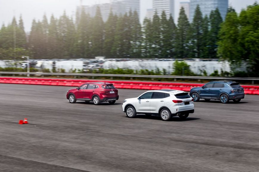 来到上汽试车场,领克01、名爵HS、WEY VV6呈一字排开,位于同一起跑线上。众所周知,百米飞人比赛是所有运动中最让人热血沸腾的,汽车0-100km/h加速也不例外。