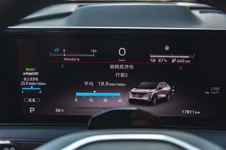 还有一个问题是高速行驶时候,会有能耗加大,续航缩水严重的情况。就ARIYA艾睿雅的高速行驶状态而言,并没有出现续航里程断崖式下降的问题。我们在城市的三环快速路上,以100km/h的速度前进,ARIYA艾睿雅四驱版车型的能耗也不过每百公里18.9kWh。可以说,ARIYA艾睿雅不仅仅是一台能在城市里轻松通勤的纯电SUV,更是一台能轻松跑高速的纯电车。