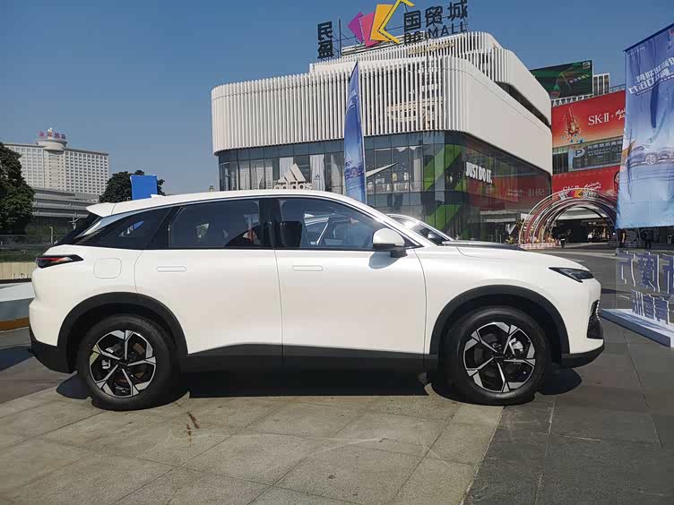 侧面来看,车身采用当下极为流行的溜背式设计,黑化的窗框营造出了悬浮式车顶效果,并且虽然是油车,但它配备了10万以内十分罕见的隐藏式门把手,大幅提升了精致感和美观度。全新运动轮毂也同样非常吸睛。车身长宽高4620/1886/1680mm,轴距2735mm,在同价位级别的紧凑型SUV中具有一定的优势。