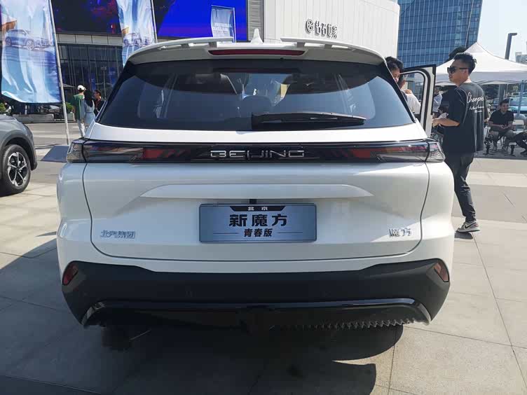 车身尾部,贯穿式尾灯设计和“BEIJING”品牌标识融为一体,小尾翼、高位刹车灯、车底的扰流板等都很年轻个性。