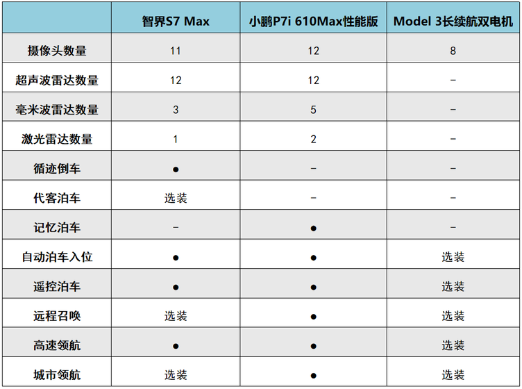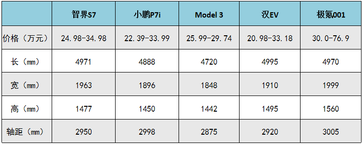 那么,和小鹏P7i、特斯拉Model 3的同价位版本相比,智界S7竞争力怎么样呢?