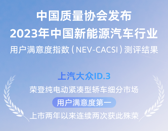 不仅如此,ID.3和ID.4X还分别获得2022年中国新能源汽车行业用户满意度指数(NEV-CACSI)中纯电动紧凑型轿车和纯电动紧凑型SUV两项满意度冠军。2023年,ID.3蝉联NEV-CACSI新能源汽车用户满意度纯电动紧凑型轿车细分市场第一。2023年6月,ID.4X获得J.D.Power新能源新车质量研究中/大型纯电动SUV细分市场第一名。就在不久前,品质七座纯电SUVID.6X获得C-NCAP“五星级”安全评级,并成功跻身2023年上半年新能源中大型及大型SUV质量排行第二名。