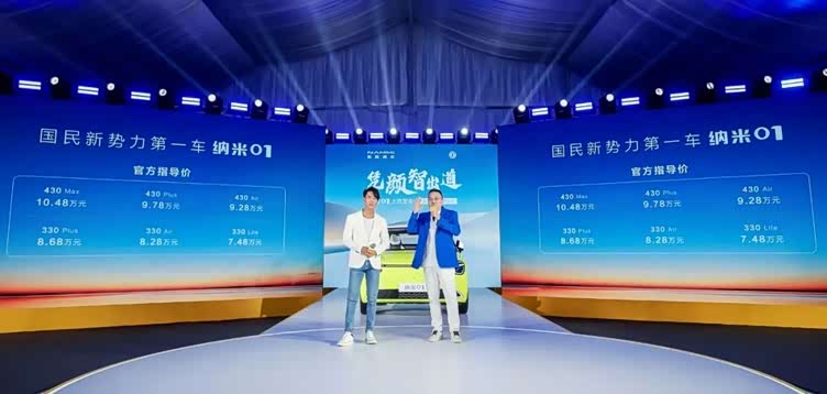 2024年1月7日,东风汽车集团旗下纳米品牌正式创立以来的首款全新车型纳米01,在江城武汉正式上市。新车以“国民新势力第一车”为定位,携“颜智”实力满电出道,与广大国民一同向美好生活进阶。此次上市的新车,包括330km和430km两种续航里程共六款车型,官方指导价为7.48-10.48万元。