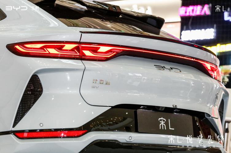 最直观的,是宋L的颜值进化。从整体来看,比亚迪宋L的外观仍然延续了DRAGON FACE家族式设计风格,但看细节,则处处全新。包括全新的前脸线条、低趴俯冲的车身姿态、无框车门、前窄后宽的轮距、四活塞刹车卡钳、尾部扩散器、自适应电动升降扰流板等,运动与时尚兼具,电感十足,性能范满满。