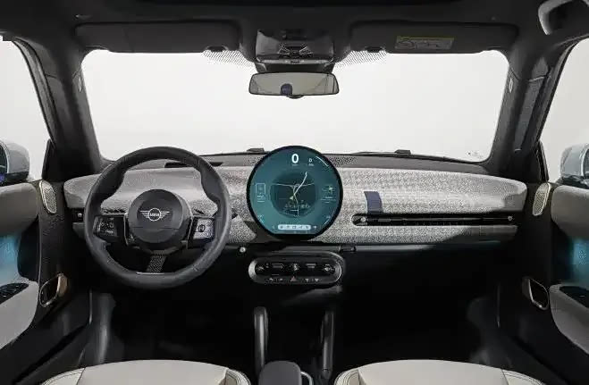 内饰方面,同样采用了大量圆形元素,最吸睛的莫过于中控那块半悬浮设计的圆形中控屏,屏幕下方保留了少量的实体按键,空调出风口采用扁平设计,方向盘前方没有传统的仪表盘,估计将以HUD抬头显示代替。